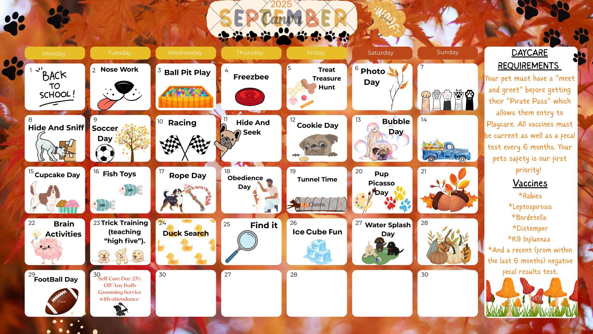 Your pet must have a "meet and greet" before getting their "Pirate Pass" which allows them entry to Playcare. All vaccines must be current as well as a fecal test every 6 months. Your pets safety is our first priority!